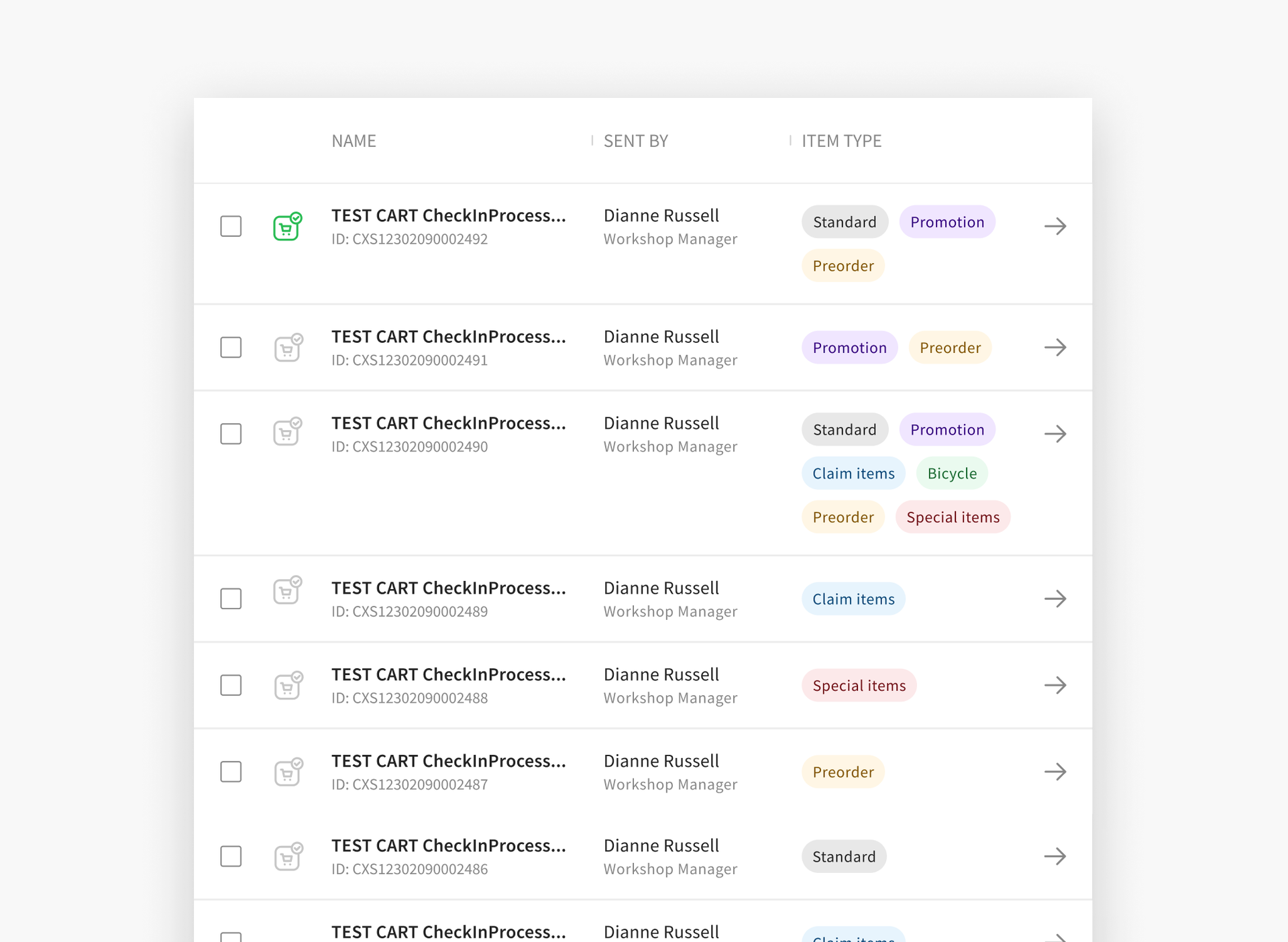 klare Statusmeldungen („Sent“, „In Progress“, „In Delivery“, „Completed“)