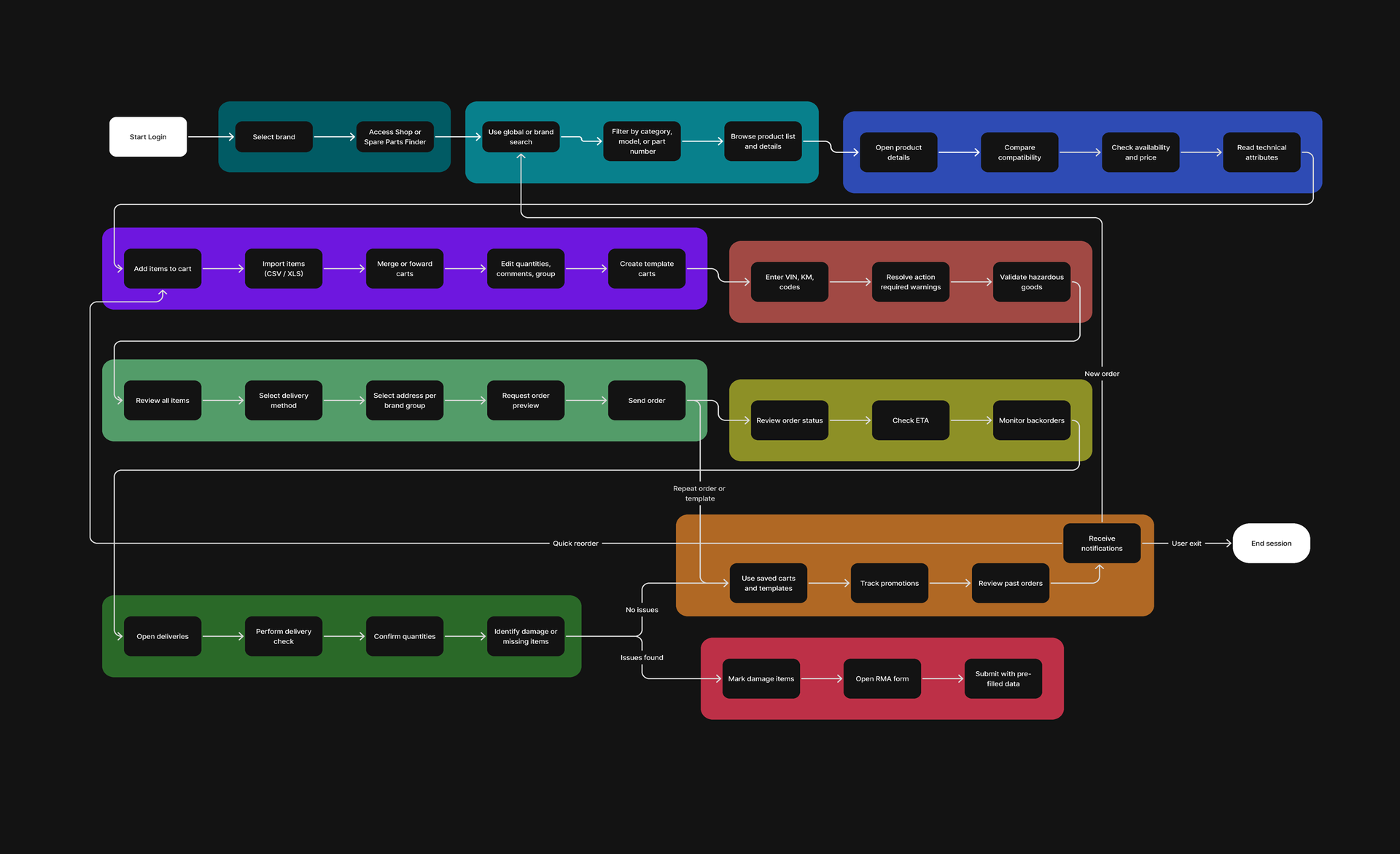 Das Visualisieren des Checkout-Flows ermöglichte es uns, einen zuvor fragmentierten Prozess zu vereinen. Die Integration von SAP-Regeln, Dealer-Rollen und Special-Item-Logic reduzierte Fehler und vereinfachte das Ordering für globale Dealerships.